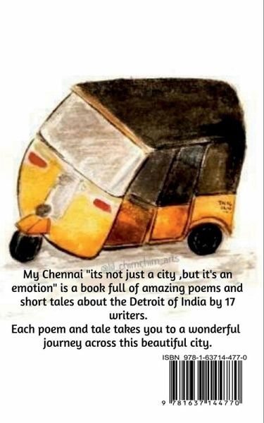My Chennai ""its not just a city ,but it's an emotion"" is a book full of amazing poems and short tales about the Detroit of India by 17 writers. Each poem and tale takes you to wonderful journey across the city. It is not just a book ,but expression of each writer's emotion.