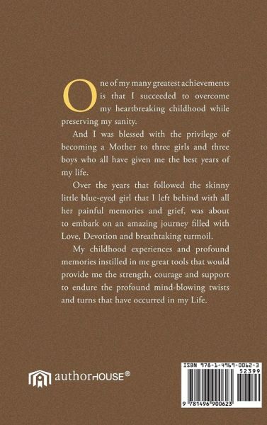 One of my many greatest achievements is that I succeeded to overcome my heartbreaking childhood while preserving my sanity. And I was blessed with the privilege of becoming a Mother to three girls and three boys who all have given me the best years of my life. Over the years that followed the skinny little blue-eyed girl that I left behind with all her painful memories and grief, was about to embark on an amazing journey filled with Love, Devotion and breathtaking turmoil. My childhood experiences and profound memories instilled in me great tools that would provide me the strength, courage and support to endure the pro-found mind-blowing twists and turns that have occurred in my Life.