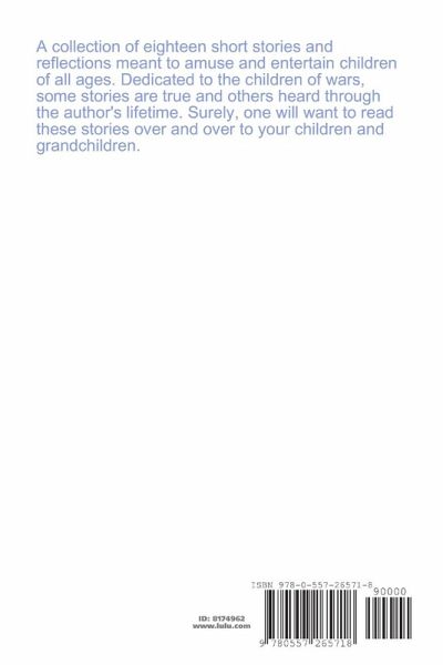 A collection of eighteen short stories and reflections meant to amuse and entertain children of all ages. Dedicated to the children of wars, some stories are true and others heard through the author's lifetime. A book children of all ages will want to read over and over.