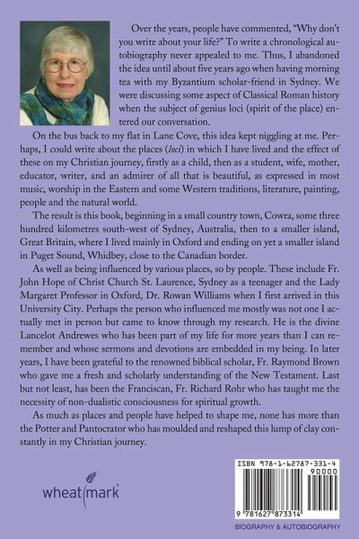 Over the years, people have commented, "Why don't you write about your life?" To write a chronological autobiography never appealed to me. Thus, I abandoned the idea until about five years ago when having morning tea with my Byzantium scholar-friend in Sydney. We were discussing some aspect of Classical Roman history when the subject of genius loci (spirit of the place) entered our conversation. On the bus back to my flat in Lane Cove, this idea kept niggling at me. Perhaps, I could write about the places (loci) in which I have lived and the effect of these on my Christian journey, firstly as a child, then as a student, wife, mother, educator, writer, and an admirer of all that is beautiful, as expressed in most music, worship in the Eastern and some Western traditions, literature, painting, people, and the natural world. The result is this book, beginning in a small country town, Cowra, some three hundred kilometres south-west of Sydney, Australia, then to a smaller island, Great Britain, where I lived mainly in Oxford and ending on yet a smaller island in Puget Sound, Whidbey, close to the Canadian border. As well as being influenced by various places, so by people. These include Fr. John Hope of Christ Church St. Laurence, Sydney as a teenager and the Lady Margaret Professor in Oxford, Dr. Rowan Williams when I first arrived in this University City. Perhaps the person who influenced me mostly was not one I actually met in person but came to know through my research. He is the divine Lancelot Andrewes who has been part of my life for more years than I can remember and whose sermons and devotions are embedded in my being. In later years, I have been grateful to the renowned biblical scholar, Fr. Raymond Brown who gave me a fresh and scholarly understanding of the New Testament. Last but not least, has been the Franciscan, Fr. Richard Rohr who has taught me the necessity of non-dualistic consciousness for spiritual growth. As much as places and people have helped to shape me, none has more than the Potter and Pantocrator who has moulded and reshaped this lump of clay constantly in my Christian journey.