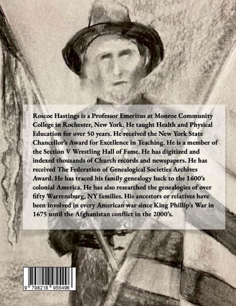 Roscoe Hastings is a Professor Emeritus at Monroe Community College in Rochester, New York. He taught Health and Physical Education for over 50 years. He received the New York State Chancellor's Award for Excellence in Teaching. He is a member of the Section V Wrestling Hall of Fame. He has digitized and indexed thousands of Church records and newspapers. He has received The Federation of Genealogical Societies Archives Award. He has traced his family genealogy back to the 1600's colonial America. He has also researched the genealogies of over fifty Warrensburg, NY families. His ancestors or relatives have been involved in every American war since King Phillip's War in 1675 until the Afghanistan conflict in the 2000's.