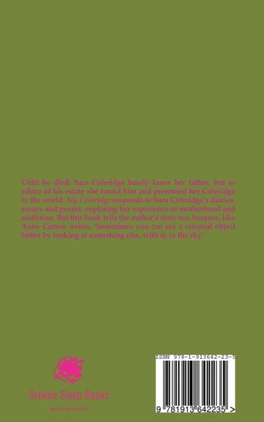 Until he died, Sara Coleridge barely knew her father, but as editor of his estate she found him and presented her Coleridge to the world. My Coleridge responds to Sara Coleridge's diaries, essays and poems, exploring her experience of motherhood and addiction. But this book tells the author's story too, because like Anne Carson writes, 'Sometimes you can see a celestial object better by looking at something else, with it, in the sky.'