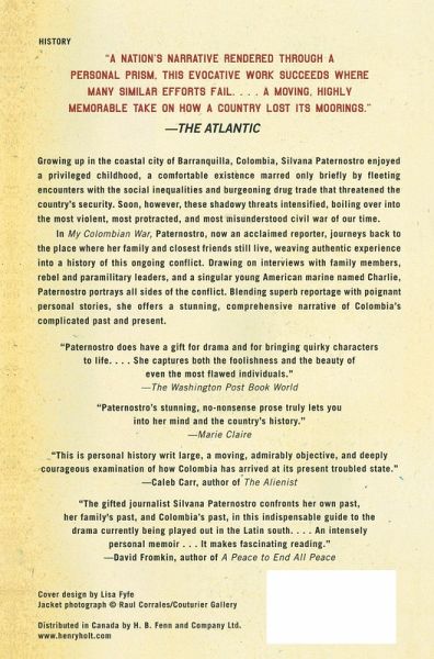 "Intimate, emotion-saturated portrait . . . the flavors and the colors are vivid . . . [A] compelling picture of contemporary Colombia and the roots of its problems . . . a gift for the rest of us."-William Grimes, The New York Times Growing up in the coastal city of Barranquilla, Colombia, Silvana Paternostro enjoyed a privileged childhood, a comfortable existence marred only briefly by fleeting encounters with the social inequalities and burgeoning drug trade that threatened the country's security. Soon, however, these shadowy threats intensified, boiling over into the most violent, most protracted, and most misunderstood civil war of our time. In My Colombian War, Paternostro, now an acclaimed reporter, journeys back to the place where her family and closest friends still live, weaving authentic experience into a history of this ongoing conflict. Drawing on interviews with family members, rebel and paramilitary leaders, and a singular young American marine named Charlie, Paternostro portrays all sides of the conflict. Blending superb reportage with poignant personal stories, she offers a stunning, comprehensive narrative of Colombia's complicated past and present.