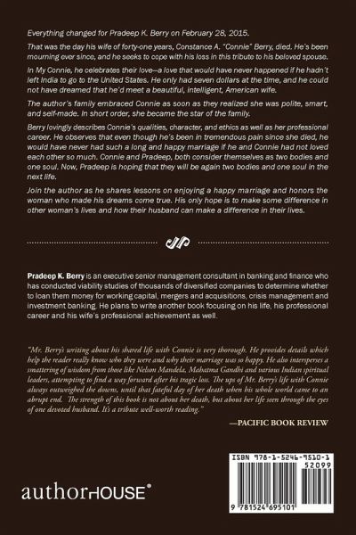 Everything changed for Pradeep K. Berry on February 28, 2015. That was the day his wife of forty-one years, Constance A. "Connie" Berry, died. He's been mourning ever since, and he seeks to cope with his loss in this tribute to his beloved spouse. In My Connie, he celebrates their love-a love that would have never happened if he hadn't left India to go to the United States. He only had seven dollars at the time, and he could not have dreamed that he'd meet a beautiful, intelligent, American wife. The author's family embraced Connie as soon as they realized she was polite, smart, and self-made. In short order, she became the star of the family. Berry lovingly describes Connie's qualities, character, and ethics as well as her professional career. He observes that even though he's been in tremendous pain since she died, he would have never had such a long and happy marriage if he and Connie had not loved each other so much. Connie and Pradeep, both consider themselves as two bodies and one soul. Now, Pradeep is hoping that they will be again two bodies and one soul in the next life. Join the author as he shares lessons on enjoying a happy marriage and honors the woman who made his dreams come true. His only hope is to make some difference in other woman's lives and how their husband can make a difference in their lives.