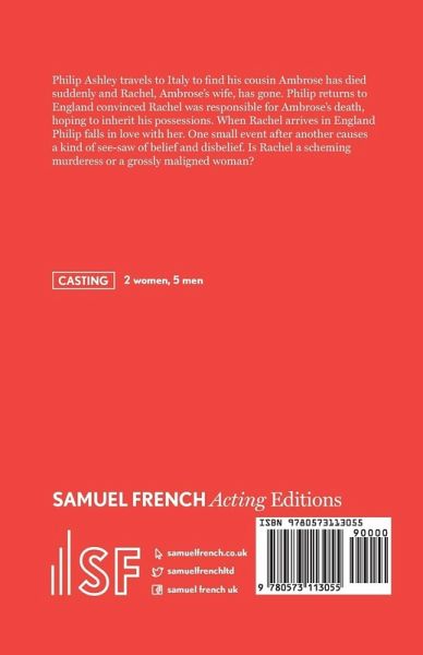 Philip Ashley travels to Italy to find his cousin Ambrose has died suddenly and Rachel, Ambrose's wife, has gone. Philip returns to England convinced Rachel was responsible for Ambrose's death, hoping to inherit his possessions. When Rachel arrives in England Philip falls in love with her. One small event after another causes a kind of see-saw of belief and disbelief. Is Rachel a scheming murderess or a grossly maligned woman?2 women, 5 men