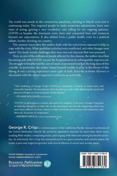 The world was awash in the coronavirus pandemic, starting in March 2020 and is continuing today. This required people to make numerous adjustments, learn new ways of acting; gaining a new vocabulary and calling for our ongoing patience. COVID-19 became the dominant news story and consumed lives and resources beyond our expectations. It also shifted from a public health crisis to a political debate, further dividing our country. This memoir traces how this author dealt with the restrictions imposed to help us cope with the virus. What quotidian activities were unaffected, and what changes were made? This book reveals challenges that were met and interests that were pursued. Then, as one of the millions of people affected by this disease, the author describes becoming sick with COVID-19 and the hospitalization he subsequently experienced. The struggle to breathe and the care of medical personnel marked the long days of this crucible. In particular, the author found himself unable to pray in the throes of this illness. It was a jarring experience amid a life of faith. Even the at-home recovery is chronicled with the efforts required to return to an active life.