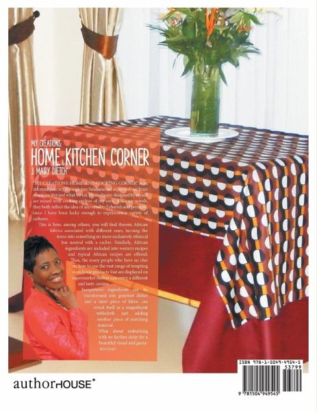 " MY HOME & MY KITCHEN CORNER is an informal journey through two fundamental aspects of our lives: where we live and what we eat. Home linens designed by myself are mixed with cooking recipes of my own. Alike my novels, they both reflect the idea of universality I cherish and promote since I have been lucky enough to experience a variety of cultures. This is how among others, you will find therein African fabrics associated with others, turning the items into something no more exclusively ethnical but neutral with a cachet, that can fit any house. Similarly, African ingredients are included…mehr