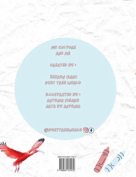My Culture And Me is a coloring book by Trinidad born Author Keeron Isaac which heralds his countries beautiful wonders. These wonders include- National birds the Scarlet Ibis and Cocrico, Carnival, Cuisine and Traditional Mas Characters such as Dame Lorraine, Moko Jumbie and many others!