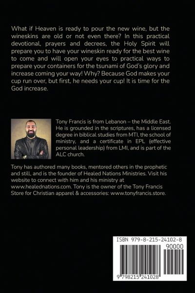What if Heaven is ready to pour the new wine, but the wineskins are old or not even there? In this practical devotional, prayers and decrees, the Holy Spirit will prepare you to have your wineskin ready for the best wine to come and will open your eyes to practical ways to prepare your containers for the tsunami of God's glory and increase coming your way! Why? Because God makes your cup run over, but first, he needs your cup! It is time for the God increase.