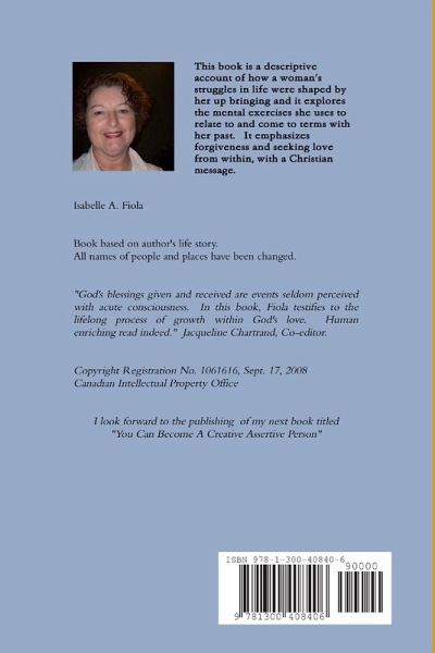 This book is a descriptive account of how a woman's struggles in life were shaped by her upbringing, and it explores the mental exercises she uses to relate to and come to terms with her past. It emphasizes forgiveness and seeking love from within, with a Christian message. Violence, adult and/or sexually explicit content.