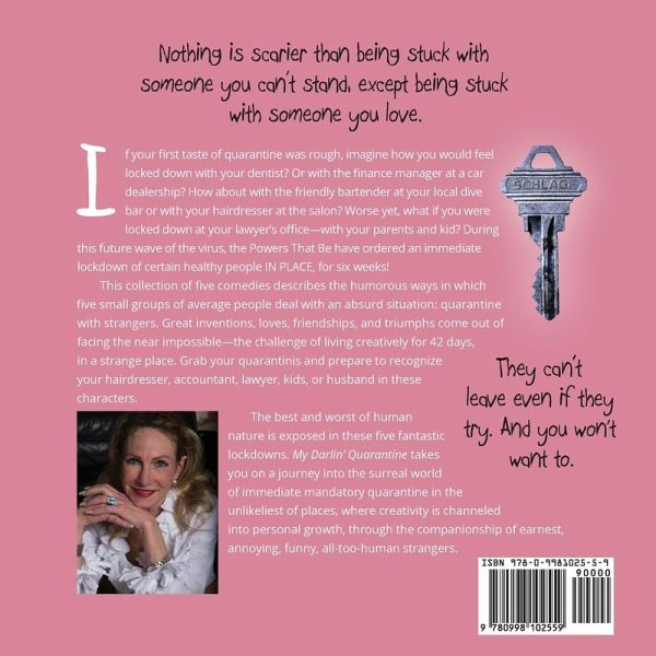 My Darlin' Quarantine: Intimate Connections Created in Chaos is a collection of short comedies that describe the humorous ways in which five small groups of average people deal with an absurd situation: quarantine with strangers. Shocked at first, characters react with creativity to forced quarantines in a dental office, a beauty salon, a car dealership, a dive bar, and a law firm. The constriction of place, the anonymity that strangers offer, and the challenge of invention, provide an invitation for imaginations to soar amidst unlikely bonds. Great loves, friendships, and triumphs come out of facing the near impossible --the challenge of living creatively for 42 days, in a strange place. My Darlin' Quarantine takes the reader on a journey into the surreal world of our present crisis set in the future in the unlikeliest of places, where creativity is channeled into personal growth through the companionship of earnest, annoying, funny, all-too-human strangers. Caricature illustrations by Christine Brallier