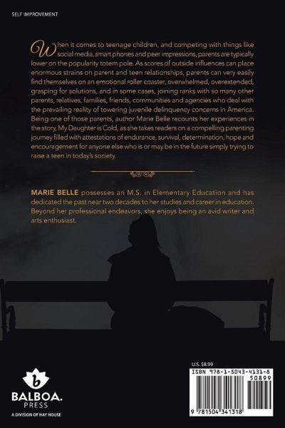 When it comes to teenage children, and competing with things like social media, smart phones and peer impressions, parents are typically lower on the popularity totem pole. As scores of outside influences can place enormous strains on parent and teen relationships, parents can very easily find themselves on an emotional roller coaster, overwhelmed, overextended, grasping for solutions, and in some cases, joining ranks with so many other parents, relatives, families, friends, communities and agencies who deal with the prevailing reality of towering juvenile delinquency concerns in America. Being one of those parents, author Marie Belle recounts her experiences in the story, My Daughter is Cold, as she takes readers on a compelling parenting journey filled with attestations of endurance, survival, determination, hope and encouragement for anyone else who is or may be in the future simply trying to raise a teen in today's society.