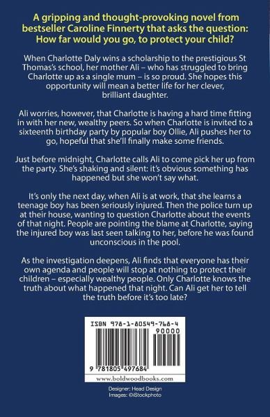 A gripping and thought-provoking novel from bestseller Caroline Finnerty that asks the question: How far would you go, to protect your child? When Charlotte Daly wins a scholarship to the prestigious St Thomas's school, her mother Ali - who has struggled to bring Charlotte up as a single mum - is so proud. She hopes this opportunity will mean a better life for her clever, brilliant daughter. Ali worries, however, that Charlotte is having a hard time fitting in with her new, wealthy peers. So when Charlotte is invited to a sixteenth birthday party by popular boy Ollie, Ali pushes her to go, hopeful that she'll finally make some friends. Just before midnight, Charlotte calls Ali to come pick her up from the party. She's shaking and silent: it's obvious something has happened but she won't say what. It's only the next day, when Ali is at work, that she learns a teenage boy has been seriously injured. Then the police turn up at their house, wanting to question Charlotte about the events of that night. People are pointing the blame at Charlotte, saying the injured boy was last seen talking to her, before he was found unconscious in the pool. As the investigation deepens, Ali finds that everyone has their own agenda and people will stop at nothing to protect their children - especially wealthy people. Only Charlotte knows the truth about what happened that night. Can Ali get her to tell the truth before it's too late? Praise for Caroline Finnerty: 'A book that will break your heart and then piece it slowly back together.' Sinead Moriarty 'Touching and poignant, this book took me on an emotional ride. A gripping and absorbing read.' Leah Mercer