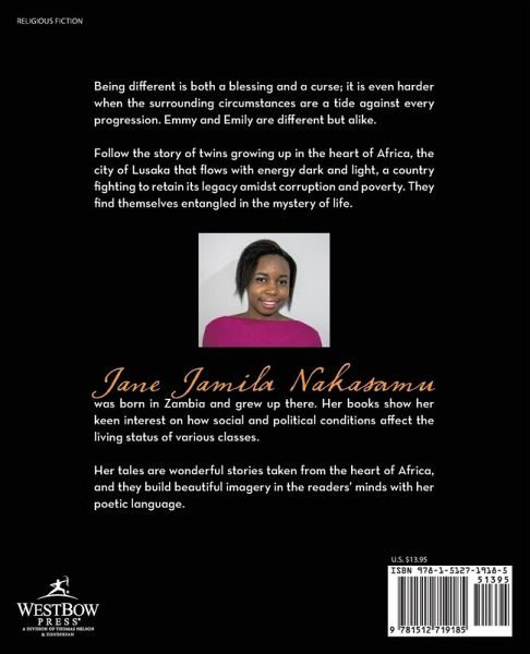 Being different is both a blessing and a curse; it is even harder when the surrounding circumstances are a tide against every progression. Emmy and Emily are different but alike. Follow the story of twins growing up in the heart of Africa, the city of Lusaka that flows with energy dark and light, a country fighting to retain its legacy amidst corruption and poverty. They find themselves entangled in the mystery of life.