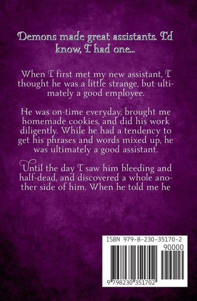 Demons made great assistants. I'd know, I had one... When I first met my new assistant, I thought he was a little strange, but ultimately a good employee. He was on-time everyday, brought me homemade cookies, and did his work diligently. While he had a tendency to get his phrases and words mixed up, he was ultimately a good assistant. Until the day I saw him bleeding and half-dead, and discovered a whole another side of him. When he told me he was a demon, and that I was his fated mate? Everything changed. Finding out the two people I loved and trusted the most in this world had already known and kept it a secret from me didn't help, but it also couldn't stop me from falling for my strange, wonderful assistant. My Demon Assistant is an MM paranormal romance featuring a human who doesn't trust easy, a slightly himbo demon with a gentle heart, and best friends who aren't afraid to knock some sense into you when you need it. Full of sweetness and fluff, My Demon Assistant is book 3 in the Demon Debacles series, but can be read as a standalone.