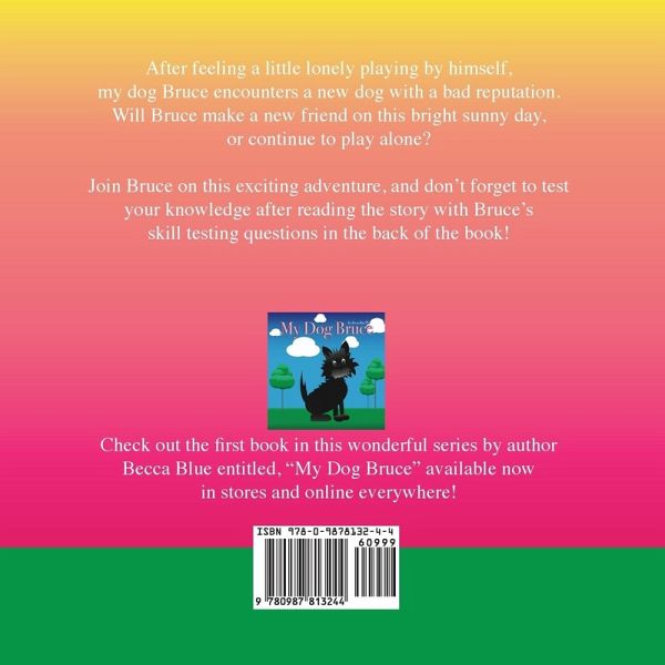 After feeling a little lonely playing by himself, Bruce encounters a new dog with a bad reputation. Will Bruce make a new friend on this bright sunny day, or continue to play alone? Join Bruce on this exciting adventure by author Becca Blue, and don't forget to test your knowledge after reading the story with Bruce's skill testing questions in the back of the book! This is the second book in the My Dog Bruce Series by author Becca Blue