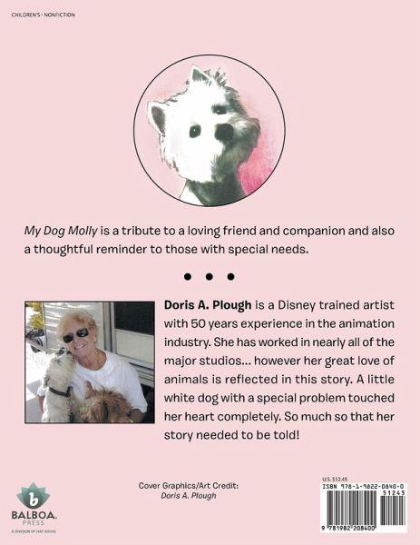 Doris A. Plough is a Disney trained artist with 50 years experience in the animation industry. She has worked in nearly all of the major studios... however her great love of animals is reflected in this story. A little white dog with a special problem touched her heart completely. So much so that her story needed to be told!