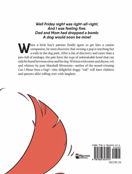 Well Friday night was right-all-right,And I was feeling fine.Dad and Mom had dropped a bomb:A dog would soon be mine! When a little boy's parents finally agree to get him a canine companion, he soon discovers that owning a pup is anything but a walk in the dog park. After a day of discovery and more than a paw-full of mishaps, the pair form the type of unbreakable bond that can only be found between a boy and his dog. Written with meter and rhyme, wit and whimsy by poet Marshall Silverman-author of the award-winning Can I Please Have a Dog?-this delightful doggy "tail" will have children and parents alike rolling over with laughter.