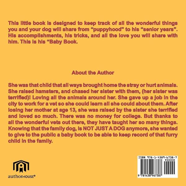 This little book is designed to keep track of all the wonderful things you and your dog will share from "puppyhood" to his "senior years." His accomplishments, his tricks, and all the love you will share with him. This is his "Baby Book."