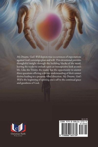 My Dreams, God's Will depicts true occurrences of expectations against God's sovereign plan and will. This devotional provides thoughtful insight through the building blocks of the word, leaving the reader to embark upon an introspective look at one's life. Like the Trinity, the reader has the opportunity to answer three questions offering a deeper understanding of their unmet desires leading to a purpose-filled direction. My Dreams, God's Will is the beginning of opening one's self to the continual grace and goodness of God.
