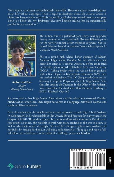 For a season, my dreams seemed humanly impossible. There were times I would daydream about life without challenges. Then, I began to daydream about life without Christ. It didn't take long to realize with Christ in my life, each challenge would become a stepping stone to a better life. My daydreams have now become dreams that are supernaturally possible for me to achieve.