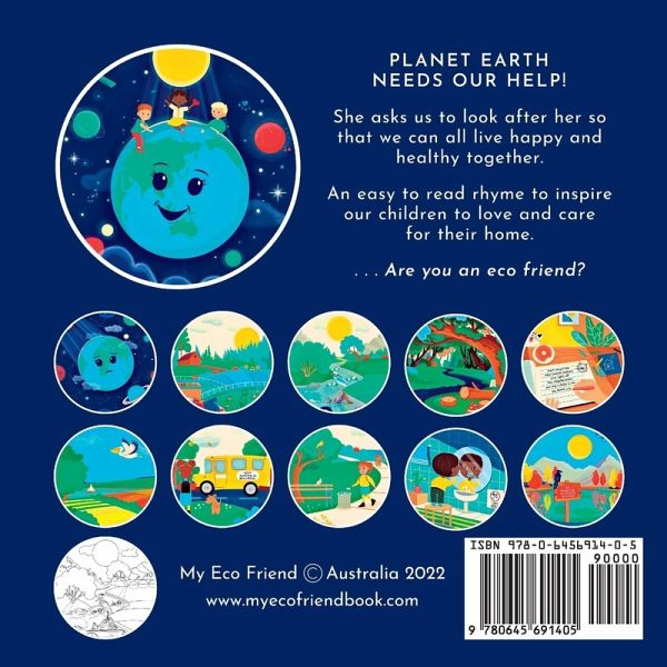 PLANET EARTH NEEDS OUR HELP! She asks us to look after her so that we can all live happy and healthy together. An easy to read rhyme to inspire our children to love and care for their home. Beautiful illustrations that are also duplicated in outline pages to colour in. Are you an eco friend? >> I wrote this poem for my children back in 1997 and I've been waiting for the right time to share it with the world - I believe the time is now, when Planet Earth needs us the most. I found the talented Zoryana on the other side of the world in the Ukraine to bring the story to life with her magical illustrations. We hope you enjoy and become an 'Eco Friend' too. With love from, Australia and Ukraine