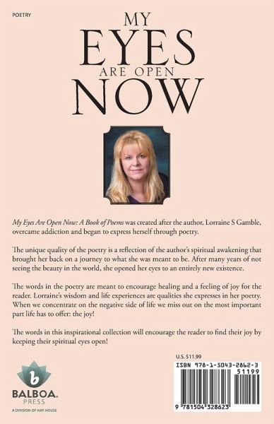 My Eyes Are Open Now: A Book of Poems was created after the author, Lorraine S Gamble, overcame addiction and began to express herself through poetry. The unique quality of the poetry is a reflection of the author's spiritual awakening that brought her back on a journey to what she was meant to be. After many years of not seeing the beauty in the world, she opened her eyes to an entirely new existence. The words in the poetry are meant to encourage healing and a feeling of joy for the reader. Lorraine's wisdom and life experiences are qualities she expresses in her poetry. When we concentrate on the negative side of life we miss out on the most important part life has to offer: the joy! The words in this inspirational collection will encourage the reader to find their joy by keeping their spiritual eyes open!