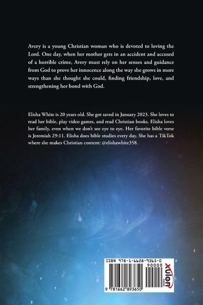 Avery is a young Christian woman who is devoted to loving the Lord. One day, when her mother gets in an accident and accused of a horrible crime, Avery must rely on her senses and guidance from God to prove her innocence along the way she grows in more ways than she thought she could, finding friendship, love, and strengthening her bond with God. Elisha White is 20 years old. She got saved in January 2023. She loves to read her bible, play video games, and read Christian books. Elisha loves her family, even when we don't see eye to eye. Her favorite bible verse is Jeremiah 29:11. Elisha does bible studies every day. She has a TikTok where she makes Christian content: @elishawhite358.