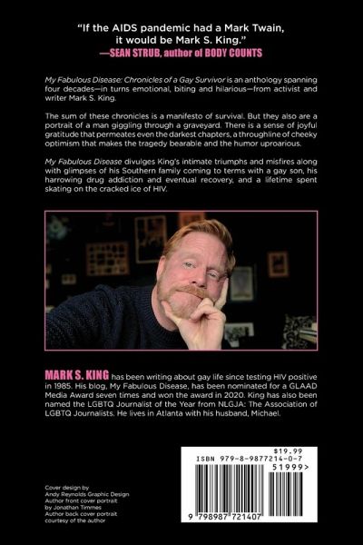 My Fabulous Disease: Chronicles of a Gay Survivor is an anthology spanning four decades - in turns emotional, biting and hilarious - from activist and writer Mark S. King. The sum of these chronicles is a manifesto of survival. But they also are a portrait of a man giggling through a graveyard. There is a sense of joyful gratitude that permeates even the darkest chapters, a throughline of cheeky optimism that makes the tragedy bearable and the humor uproarious. My Fabulous Disease divulges King's intimate triumphs and misfires along with glimpses of his Southern family coming to terms with a gay son, his harrowing drug addiction and eventual recovery, and a lifetime spent skating on the cracked ice of HIV.