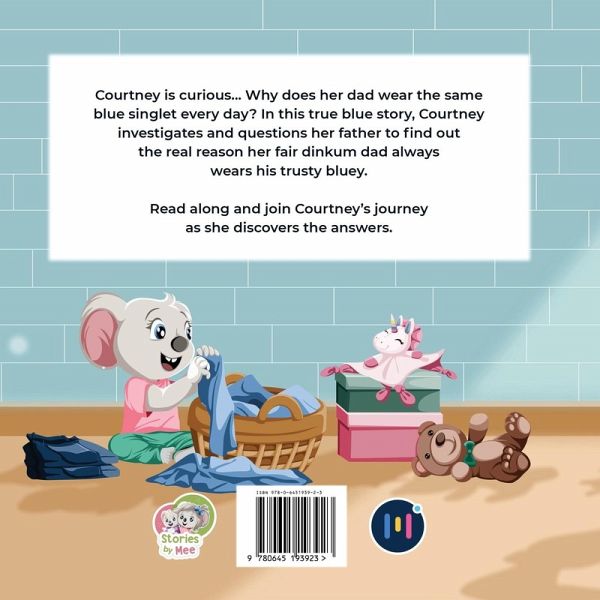 Courtney is curious... Why does her dad wear the same blue singlet every day? In this true blue story, Courtney investigates and questions her father to find out the real reason her fair dinkum dad always wears his trusty bluey. Read along and join Courtney's journey as she discovers the answers.
