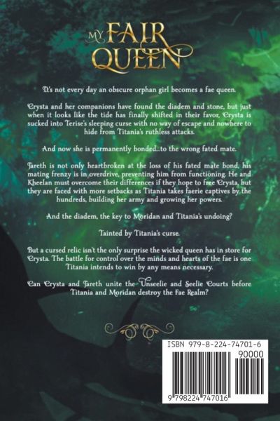 It's not every day an obscure orphan girl becomes a fae queen. Crysta and her companions have found the diadem and stone, but just when it looks like the tide has finally shifted in their favor, Crysta is sucked into Terise's sleeping curse with no way of escape and nowhere to hide from Titania's ruthless attacks. And now she is permanently bonded...to the wrong fated mate. Jareth is not only heartbroken at the loss of his fated mate bond, his mating frenzy is in overdrive, preventing him from functioning. He and Kheelan must overcome their differences if they hope to free Crysta, but they are faced with more setbacks as Titania takes faerie captives by the hundreds, building her army and growing her powers. And the diadem, the key to Moridan and Titania's undoing? Tainted by Titania's curse. But a cursed relic isn't the only surprise the wicked queen has in store for Crysta. The battle for control over the minds and hearts of the fae is one Titania intends to win by any means necessary. Can Crysta and Jareth unite the Unseelie and Seelie Courts before Titania and Moridan destroy the Fae Realm? "Sometimes you find the perfect fantasy world and you want to crawl inside of it and live there. Surrounded by magic, mystery, and psychological messes. This is by far one of the most intriguing, breathtakingly haunting worlds I've ever come across. I love it!!" - Kallie