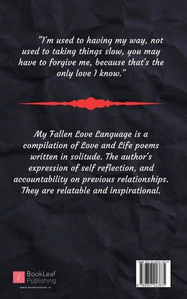 "I'm used to having my way, not used to taking things slow, you may have to forgive me, because that's the only love I know. " My Fallen Love Lanquage is a compilation of Love and Life poems written in solitude. The author's expression of self reflection, and accountability on previous relationships. They are relatable and inspirational.