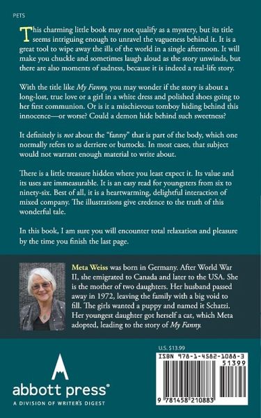 This charming little book may not qualify as a mystery, but its title seems intriguing enough to unravel the vagueness behind it. It is a great tool to wipe away the ills of the world in a single afternoon. It will make you chuckle and sometimes laugh aloud as the story unwinds, but there are also moments of sadness, because it is indeed a real-life story. With the title like My Fanny, you may wonder if the story is about a long-lost, true love or a girl in a white dress and polished shoes going to her first communion. Or is it a mischievous tomboy hiding behind this innocence—or worse? Could a demon hide behind such sweetness? It definitely is not about the "fanny" that is part of the body, which one normally refers to as derriere or buttocks. In most cases, that subject would not warrant enough material to write about. There is a little treasure hidden where you least expect it. Its value and its uses are immeasurable. It is an easy read for youngsters from six to ninety-six. Best of all, it is a heartwarming, delightful interaction of mixed company. The illustrations give credence to the truth of this wonderful tale. In this book, I am sure you will encounter total relaxation and pleasure by the time you finish the last page.