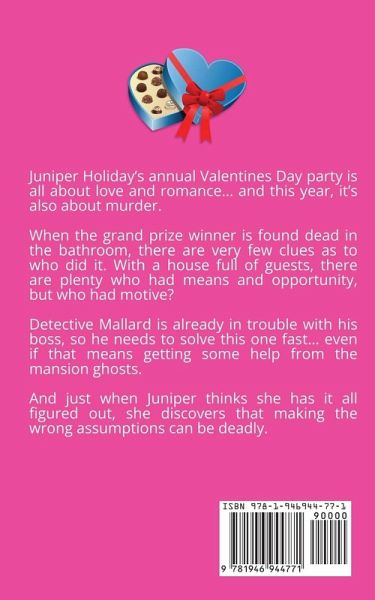 Juniper Holiday's annual Valentines Day party is all about love and romance... and this year, it's also about murder. When the grand prize winner is found dead in the bathroom, there are very few clues as to who did it. With a house full of guests, there are plenty who had means and opportunity, but who had motive? Detective Mallard is already in trouble with his boss, so he needs to solve this one fast... even if that means getting some help from the mansion ghosts. And just when Juniper thinks she has it all figured out, she discovers that making the wrong assumptions can be deadly.
