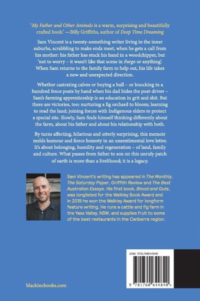 A moving and hilarious fish-out-of-water memoir of a millennial leaving his inner-city life to take over the family farm. Winner, Prime Minister's Literary Award for Nonfiction 2023 'My Father and Other Animals is a warm, surprising and beautifully crafted book.' -Billy Griffiths, author of Deep Time Dreaming Sam Vincent is a twenty-something writer living in the inner suburbs, scrabbling to make ends meet, when he gets a call from his mother: his father has stuck his hand in a woodchipper, but 'not to worry - it wasn't like that scene in Fargo or anything'. When Sam returns to the family farm to help out, his life takes a new and unexpected direction. Whether castrating calves or buying a bull - or knocking in a hundred fence posts by hand when his dad hides the post-driver - Sam's farming apprenticeship is an education in grit and shit. But there are victories, too: nurturing a fig orchard to bloom; learning to read the land; joining forces with Indigenous elders to protect a special site. Slowly, Sam finds himself thinking differently about the farm, about his father and about his relationship with both. By turns affecting, hilarious and utterly surprising, this memoir melds humour and fierce honesty in an unsentimental love letter. It's about belonging, humility and regeneration - of land, family and culture. What passes from father to son on this unruly patch of earth is more than a livelihood; it is a legacy. 'Sam Vincent probes deeply into some of the biggest issues of our time ... This book is a celebration of the love of land and builds bridges of understanding that will appeal to a broad cross section of readers.' -Judges' comments, Prime Minister's Literary Awards 'My Father and Other Animals is a beautiful tale of legacy, family, and a millennial finding his place in the world.' -Samuel Bernard, The Weekend Australian 'Notable Books' 'For any reader desiring to understand contemporary rural Australia, this entertaining and important book is a must-read.' -Charles Massy, author of Call of the Reed Warbler 'Bloody hilarious and salt-of-the-earth heartwarming, My Father and Other Animals is an absolute treasure of a book.' -Anna Krien, author of Act of Grace, Night Games and Into the Woods 'A farmer, his son ... what to forget and what to remember, how to inherit and when to change. Sam Vincent has learned a few things from his dad, and among them is how to pay attention. For those of us who hunt our food plastic-wrapped in aisle three, this is a funny, kindly and observant introduction to the landscape that wraps around our cities, keeps us alive and means the world.' -Kate Holden, author of The Winter Road Selected for the 2022 Grattan Institute Prime Minister's Summer Reading List