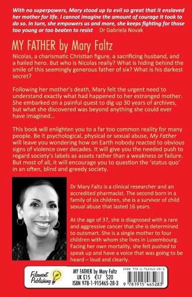 Nicolas a charismatic Christian figure, a sacrificing husband, and a hailed hero. But who is Nicolas really? What is hiding behind the smile of this seemingly generous father of six? What is his darkest secret? Following her mother's death, Mary urgently needed to understand exactly what had happened to her estranged mother. She embarked on a painful quest to dig up 30 years of archives, but what she discovered was beyond anything she could ever have imagined... This book will enlighten you about a far too common reality for many people. Be it psychological, physical or sexual abuse, My Father will leave you wondering how on Earth nobody reacted to obvious signs of violence over decades. It will push you to regard society's labels as assets rather than weaknesses or failures. But most of all, it will encourage you to question the status quo in an often blind and greedy society.
