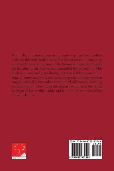 With tales of demonic possession, espionage, and tremendous violence, this story reads like a crime fiction novel. It is anything but that! This is the true story of the horrors witnessed by Angela, the daughter of an abusive man controlled by his demons. This book has twists and turns throughout that will keep you on the edge of your seat, while the developing relationship between Angela and God in the midst of the turmoil will have you reaching for your box of tissue. Take this journey with her as she learns to let go of her earthly daddy and fall into the embrace of her heavenly Father.