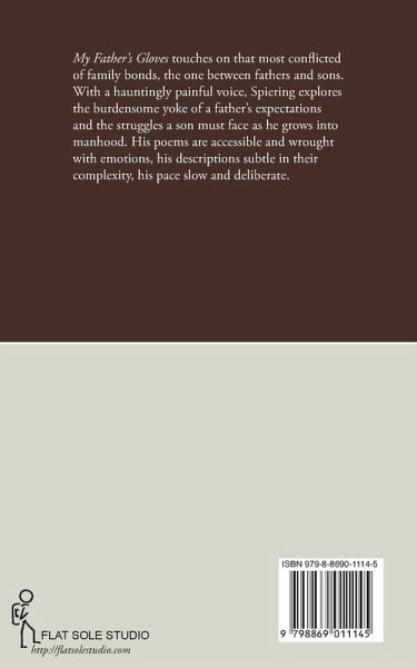 My Father's Gloves touches on the complex, often fraught bond between fathers and sons with raw honesty and deep emotional resonance. In this haunting poetry collection, David Spiering explores the heavy burden of a father's expectations and the struggles a son faces as he grows into manhood. With an accessible yet subtly complex voice, Spiering's poems are wrought with piercing emotions and vivid descriptions. His measured, deliberate pacing allows each hard-hitting revelation about family, identity, and the legacies we inherit to fully resonate. From reminiscences on his German grandmother's influence to meditations on his father's thriftiness and apparent emotional distance, Spiering invites readers into the most intimate spaces of the heart. Compassionate yet unflinching, these poems confront the difficulties of forging one's own path while still carrying the weight of paternal expectations and generational traditions.
