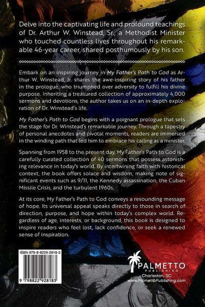 Delve into the captivating life and profound teachings Dr. Arthur W. Winstead, Sr., a Methodist Minister who touched countless lives throughout his remarkable 46-year career, shared posthumously by his son. Inheriting his father's treasured compilation of approximately 4,000 sermons and devotions, author Arthur W. Winstead, Jr., in the prologue takes us on an inspiring voyage, where we witness the transformation of his father, who overcame numerous challenges to answer his divine calling. My Father's Path to God opens with a poignant prologue that lays the foundation for Dr. Winstead's journey. Weaving together personal anecdotes and pivotal moments, it illuminates the winding path that led him to embrace his role as a minister. From the depths of doubt to the heights of unwavering faith, readers will be captivated by the profound revelation and courage exhibited in the prologue of the book. Within the carefully selected 40 sermons, spanning from 1958 to the present day, Dr. Winstead's words resonate with astonishing relevance. His timeless messages, indicated with precise dates, serve as guiding beacons amidst the trials and tribulations of our contemporary world. Thoughtfully noting historic events such as 9/11, the Cuban Missile Crisis, the Kennedy assassination, and the turbulent 1960s, the book intertwines faith with historical context, offering solace and wisdom to readers of all backgrounds. My Father's Path to God encompasses a diverse range of themes, but at its core lies the resounding message of hope. With its universal appeal, this book speaks directly to anyone seeking direction, yearning for purpose, and searching for hope in today's increasingly complex world. Designed for readers of all ages, interests, and walks of life, My Father's Path to God offers hope whether readers feel lost, lack confidence, or simply desire inspiration.