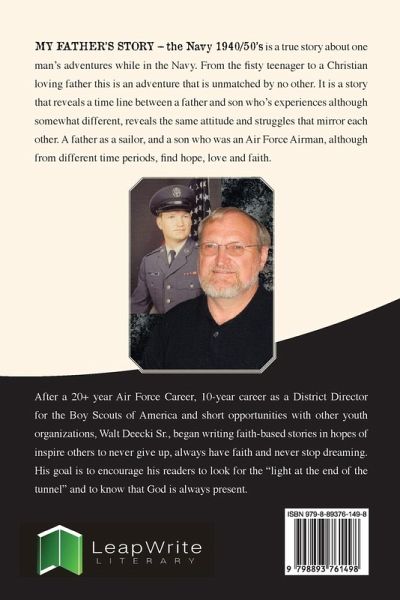 MY FATHER'S STORY - the Navy 1940/50's is a true story about one man's adventures while in the Navy. From the fisty teenager to a Christian loving father this is an adventure that is unmatched by no other. It is a story that reveals a time line between a father and son who's experiences although somewhat different, reveals the same attitude and struggles that mirror each other. A father as a sailor, and a son who was an Air Force Airman, although from different time periods, find hope, love and faith.