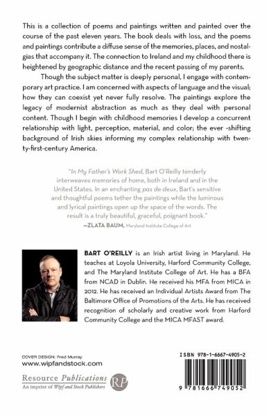 This is a collection of poems and paintings written and painted over the course of the past eleven years. The book deals with loss, and the poems and paintings contribute a diffuse sense of the memories, places, and nostalgias that accompany it. The connection to Ireland and my childhood there is heightened by geographic distance and the recent passing of my parents. Though the subject matter is deeply personal, I engage with contemporary art practice. I am concerned with aspects of language and the visual; how they can coexist yet never fully resolve. The paintings explore the legacy of modernist abstraction as much as they deal with personal content. Though I begin with childhood memories I develop a concurrent relationship with light, perception, material, and color; the ever -shifting background of Irish skies informing my complex relationship with twenty-first-century America.