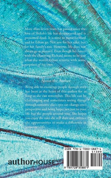 More than seven years has passed since the love of Shiloh's life has disappeared and is presumed dead. It is time to move forward and let Ethan go. Not just for her sake, but for her family's too. However, life does not always go as planned. Even though her future with the charming Richard seems to be just what she wants; Ethan returns with some surprises of his own.