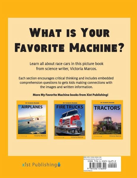 What is your favorite machine? In My Favorite Machine: Race Cars, young readers will learn all about race cars. This book introduces kids to the different types of race cars, how they work and what they do.