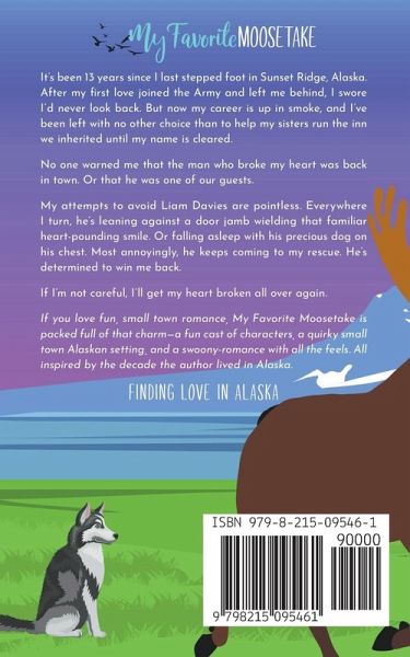 ★★★★★"I have been binge reading this series- with a grin on my face all day." --Reviewer ★★★★★ "... the more time I spend in Sunset Ridge, the more I want to visit ..." --Reviewer ★★★★★ " ...get ready to fall in love with these amazing characters and Ed, the matchmaking moose." --Reviewer It's been 13 years since I last stepped foot in Sunset Ridge, Alaska. After my first love joined the Army and left me behind, I swore I'd never look back. But now my career is up in smoke, and I've been left with no other choice than to help my sisters run the inn we inherited until my name is cleared. No one warned me that the man who broke my heart was back in town. Or that he was one of our guests. My attempts to avoid Liam Davies are pointless. Everywhere I turn, he's leaning against a door jamb wielding that familiar heart-pounding smile. Or falling asleep with his precious dog on his chest. Most annoyingly, he keeps coming to my rescue. He's determined to win me back. If I'm not careful, I'll get my heart broken all over again. If you love fun, small town romance, My Favorite Moosetake is packed full of that charm-a fun cast of characters, a quirky small town Alaskan setting, and a swoony-romance with all the feels. All inspired by the decade the author lived in Alaska. Heat Level: Sweet/Mild