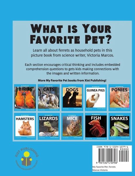 What is your favorite pet? My favorite pets are ferrets. Would you like to learn about them? In My Favorite Pet: Ferrets, students will learn about having ferrets as pets. Each My Favorite Pet book includes information on where pets live, how they play, and what they eat. Sample Text: Ferrets sleep about 18 hours a day. But when they're awake, they love to play.