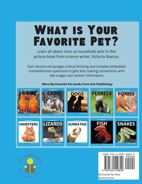 What is your favorite pet? My favorite pets are mice. Would you like to learn about them? In My Favorite Pet: Mice, students will learn about having mice as pets. Each My Favorite Pet book includes information on where pets live, how they play, and what they eat. Sample Text: Mice are very active and curious animals. They can cause trouble if they escape from their cages.