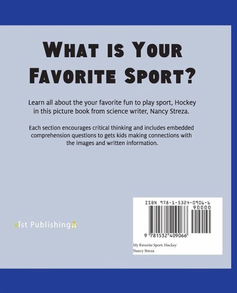 What's your favorite sport? In My Favorite Sport: Hockey students will learn all about the fast-paced game on ice. Each My Favorite Sport book includes engaging nonfiction text about the game, the court, the rules, the scoring, the equipment, and the skills needed to play the game.
