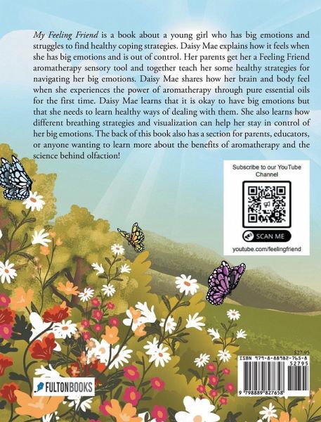 My Feeling Friend is a book about a young girl who has big emotions and struggles to find healthy coping strategies. Daisy Mae explains how it feels when she has big emotions and is out of control. Her parents get her a Feeling Friend aromatherapy sensory tool and together teach her some healthy strategies for navigating her big emotions. Daisy Mae shares how her brain and body feel when she experiences the power of aromatherapy through pure essential oils for the first time. Daisy Mae learns that it is okay to have big emotions but that she needs to learn healthy ways of dealing with them. She also learns how different breathing strategies and visualization can help her stay in control of her big emotions. The back of this book also has a section for parents, educators, or anyone wanting to learn more about the benefits of aromatherapy and the science behind olfaction!
