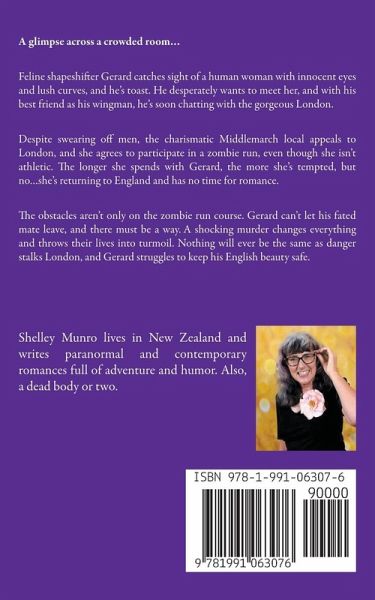A glimpse across a crowded room… Feline shapeshifter Gerard catches sight of a human woman with innocent eyes and lush curves, and he's toast. He desperately wants to meet her, and with his best friend as his wingman, he's soon chatting with the gorgeous London. Despite swearing off men, the charismatic Middlemarch local appeals to London, and she agrees to participate in a zombie run, even though she isn't athletic. The longer she spends with Gerard, the more she's tempted, but no…she's returning to England and has no time for romance. The obstacles aren't only on the zombie run course. Gerard can't let his fated mate leave, and there must be a way. A shocking murder changes everything and throws their lives into turmoil. Nothing will ever be the same as danger stalks London, and Gerard struggles to keep his English beauty safe. Warning: Contains a sexy feline male who knows who he wants and isn't afraid to chase her, woo her, protect and love her until she decides to stop running.