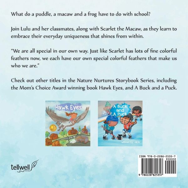 What do a puddle, a macaw and a frog have to do with school? Join Lulu and her classmates, along with Scarlet the Macaw, as they learn to embrace their everyday uniqueness that shines from within. "We are all special in our own way. Just like Scarlet has lots of fine colorful feathers now, we each have our own special colorful feathers that make us who we are." Check out other titles in the Nature Nurtures Storybook Series, including the Mom's Choice Award winning book Hawk Eyes, and A Buck and a Puck.